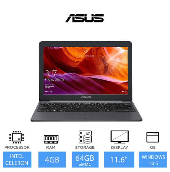 The Asus E203M is a compact 11-inch Windows notebook computer built for everyday tasks like browsing, streaming and light work. With 4GB of RAM and a 64GB SSD, this small laptop delivers quick access and easy portability in a lightweight design.